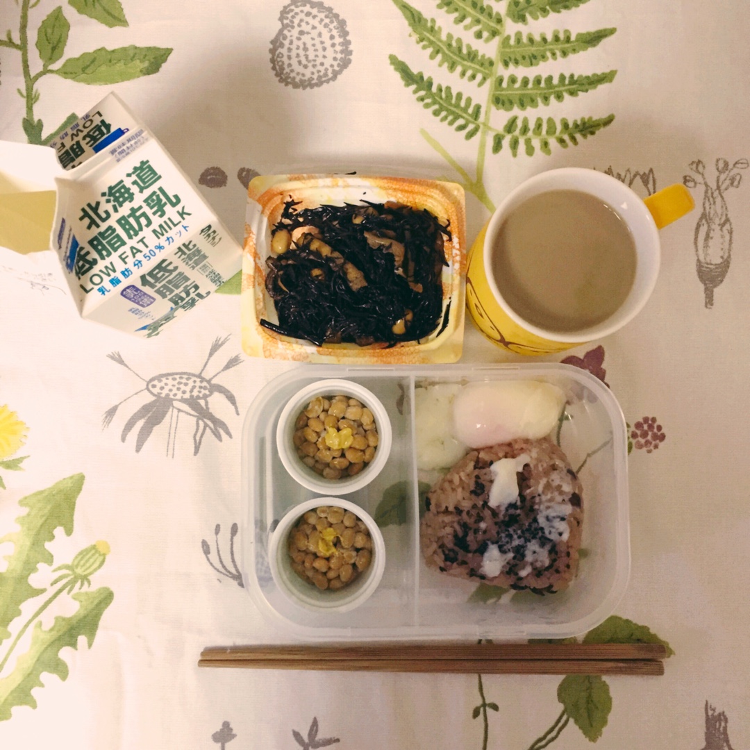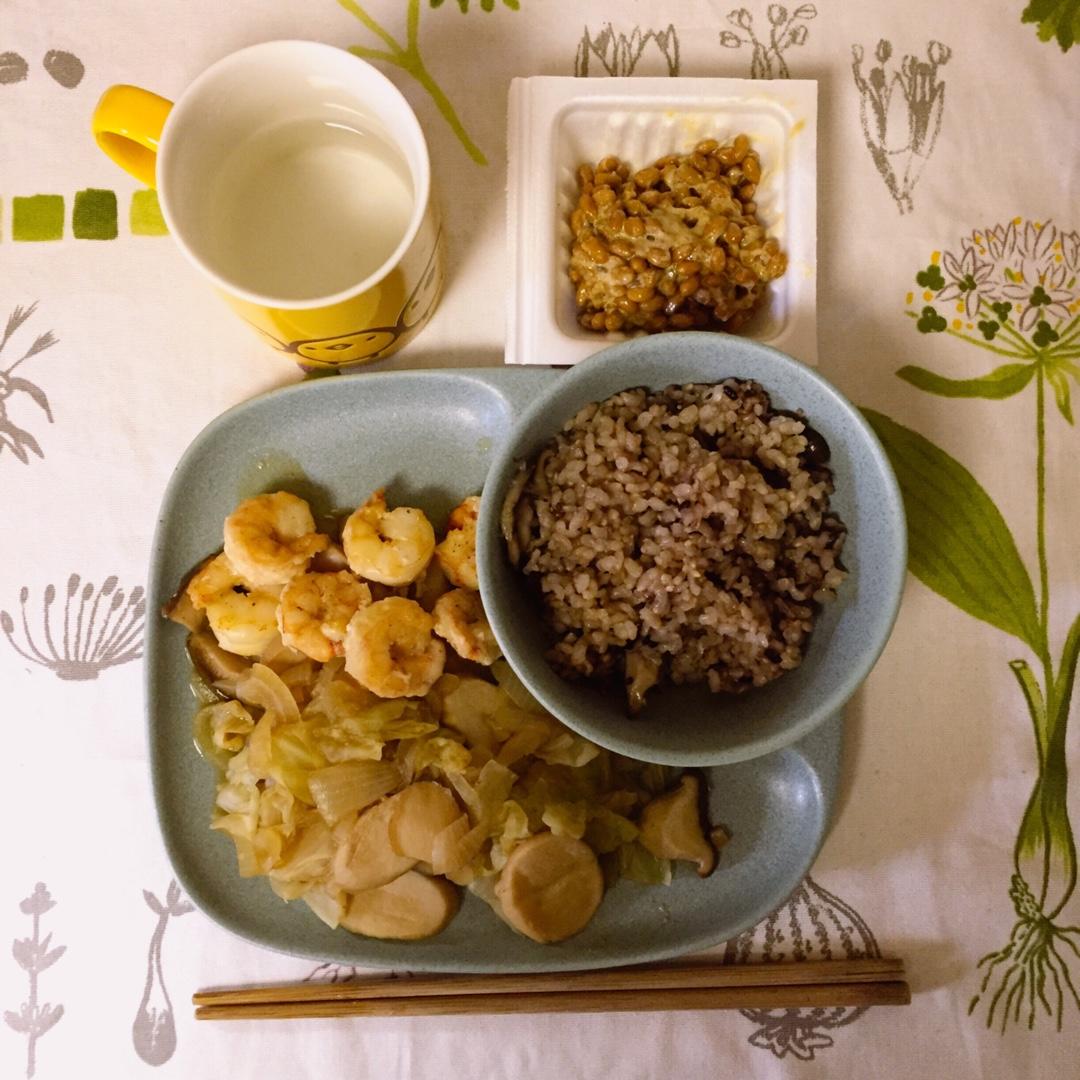 雜糧飯 蘑菇大頭菜 納豆 蝦仁
