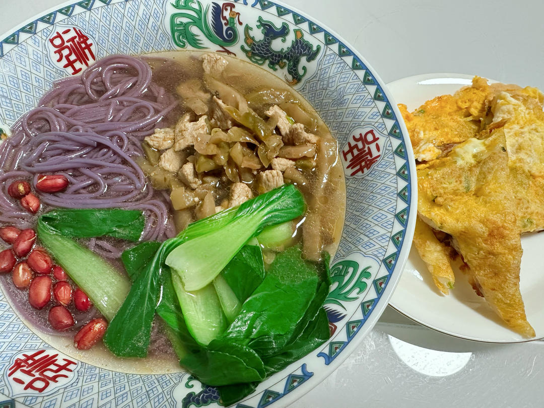 榨菜肉丝面,鸡蛋饼