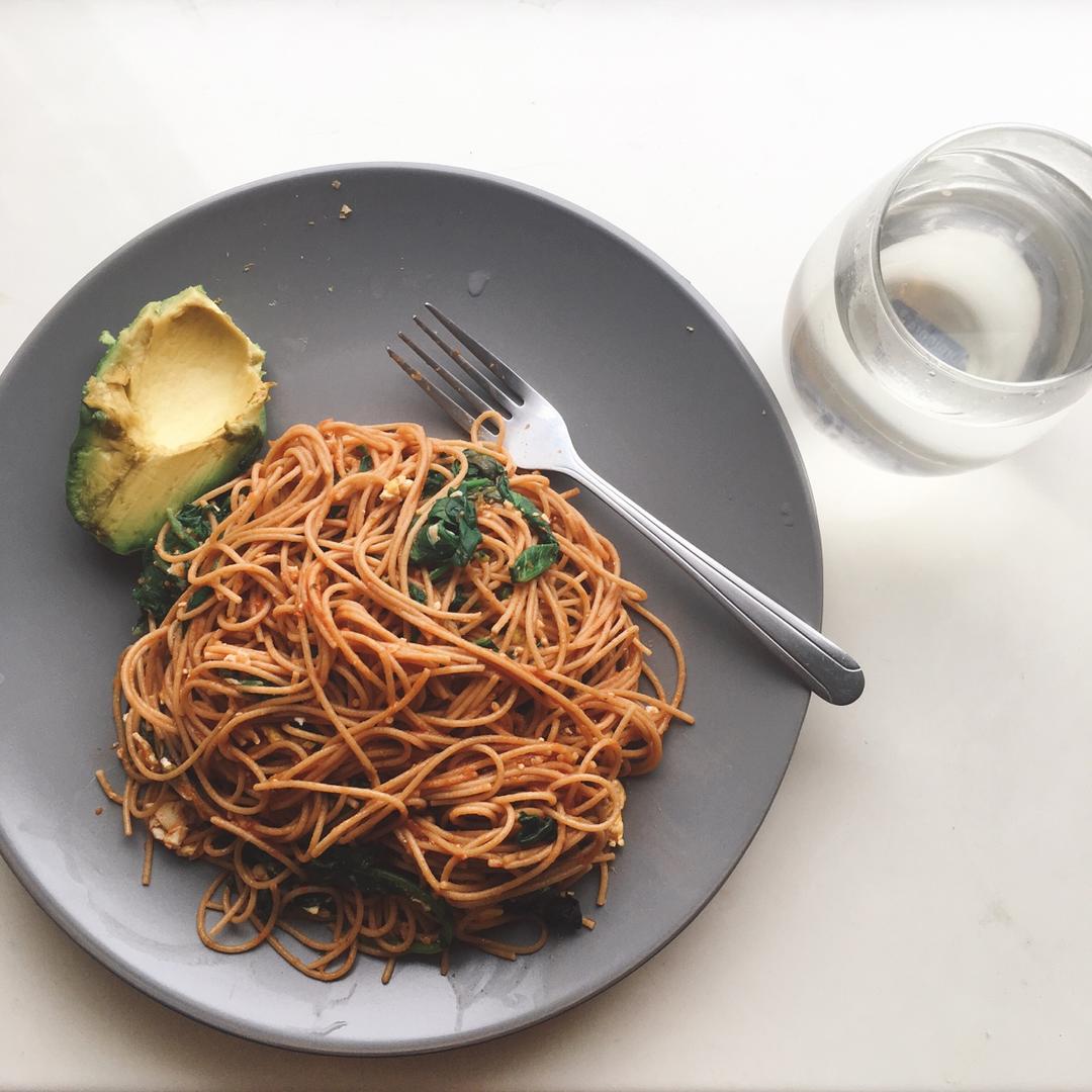 Wheat Pasta with spinach and egg