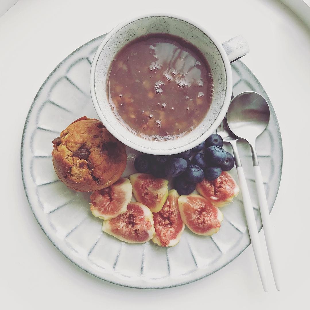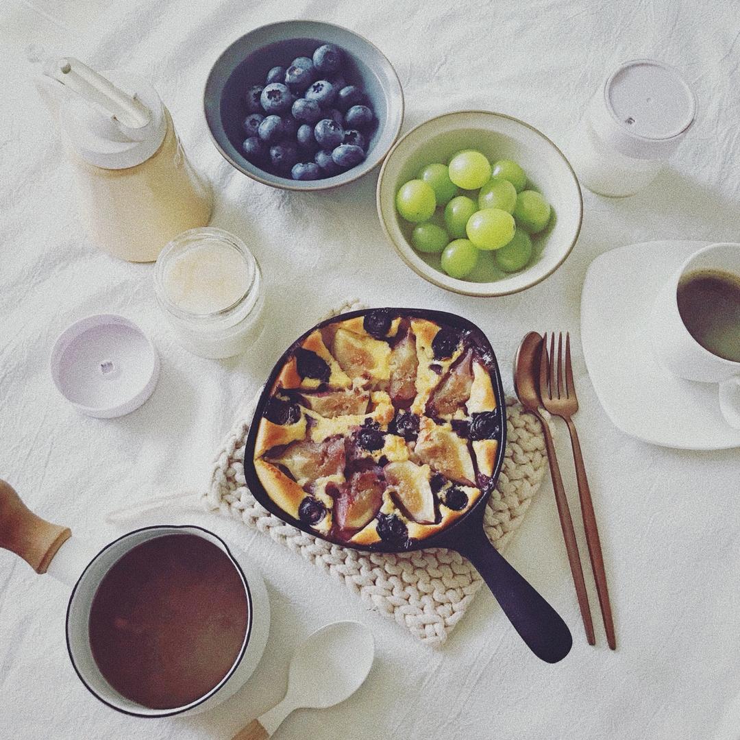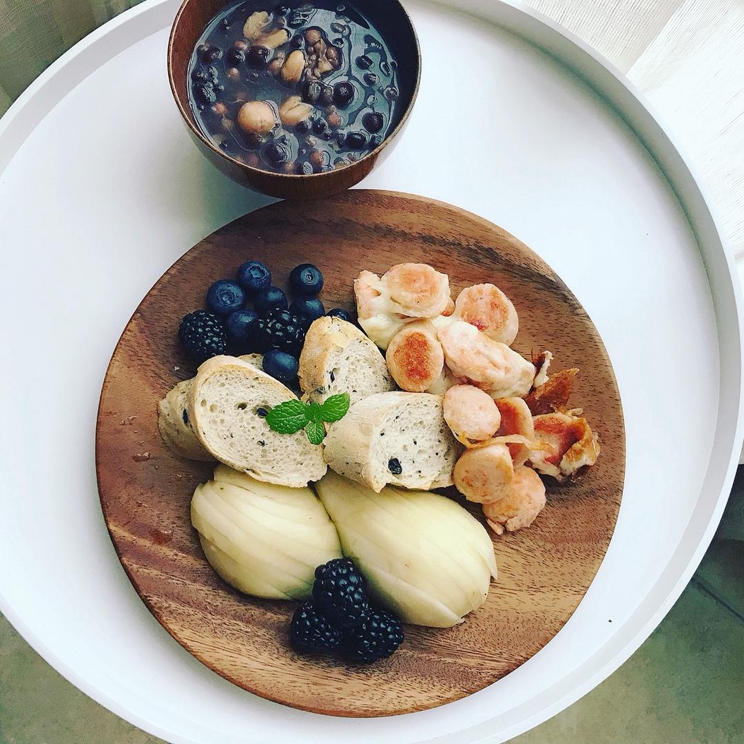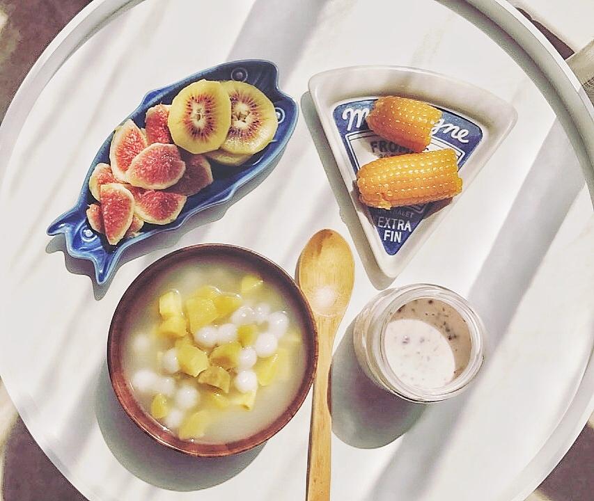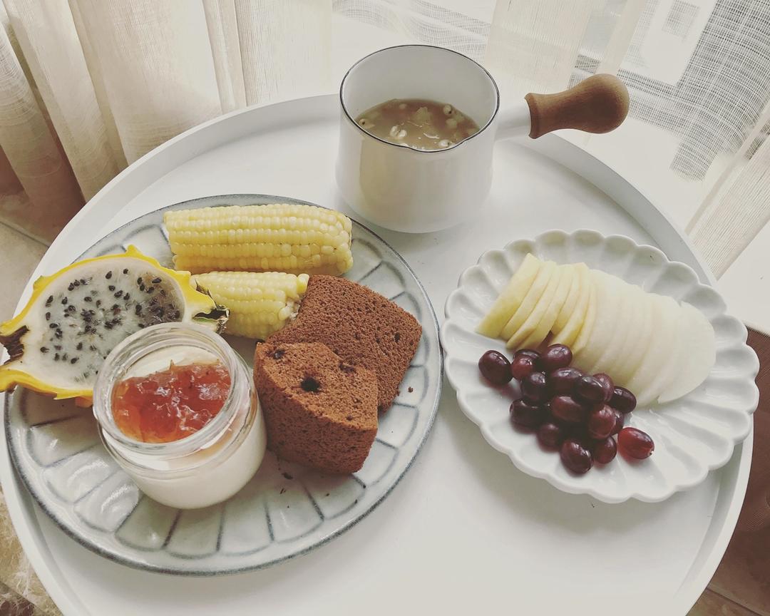 草莓酱酸奶、水果。🌹