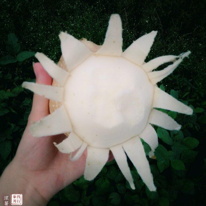 被剥成太阳花的 凉薯,其实人家真身如图2,一大个吃下来,还真有点撑!感觉有点像...