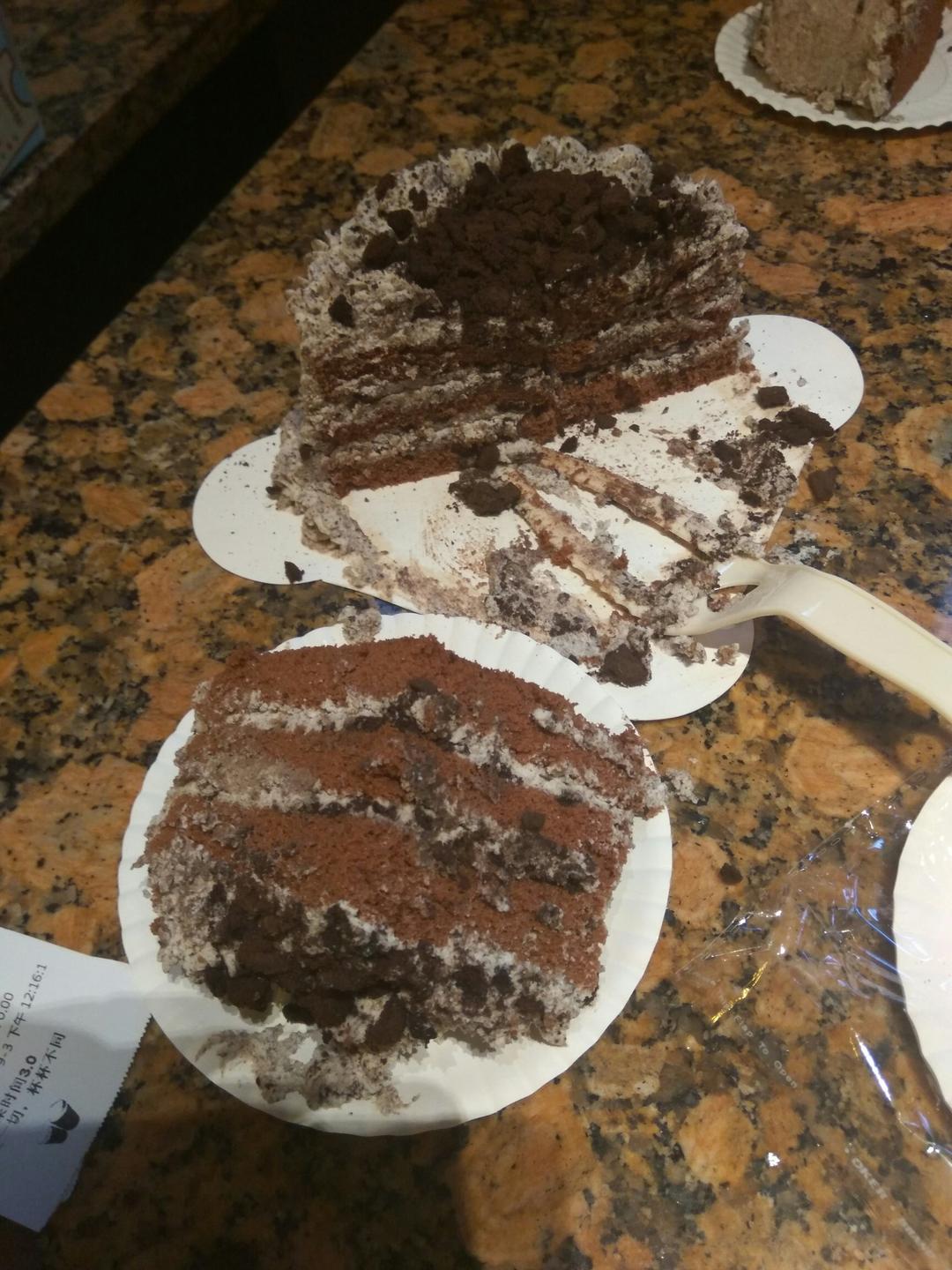 可可戚风加奥利奥咸奶油,减了10g糖,虽然裱花很丑,但是超好吃...