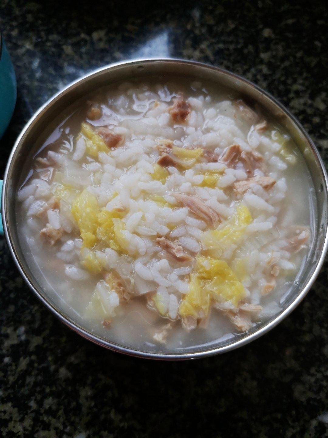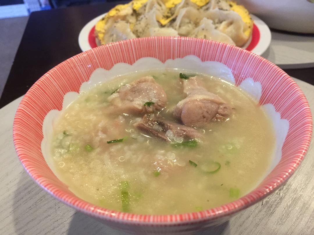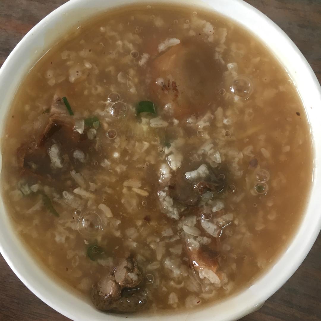 鸭肉粥,用锅煮的不好,下次用砂锅试试😊