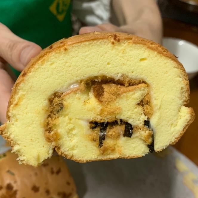 没有开裂的“葱香肉松蛋糕卷”