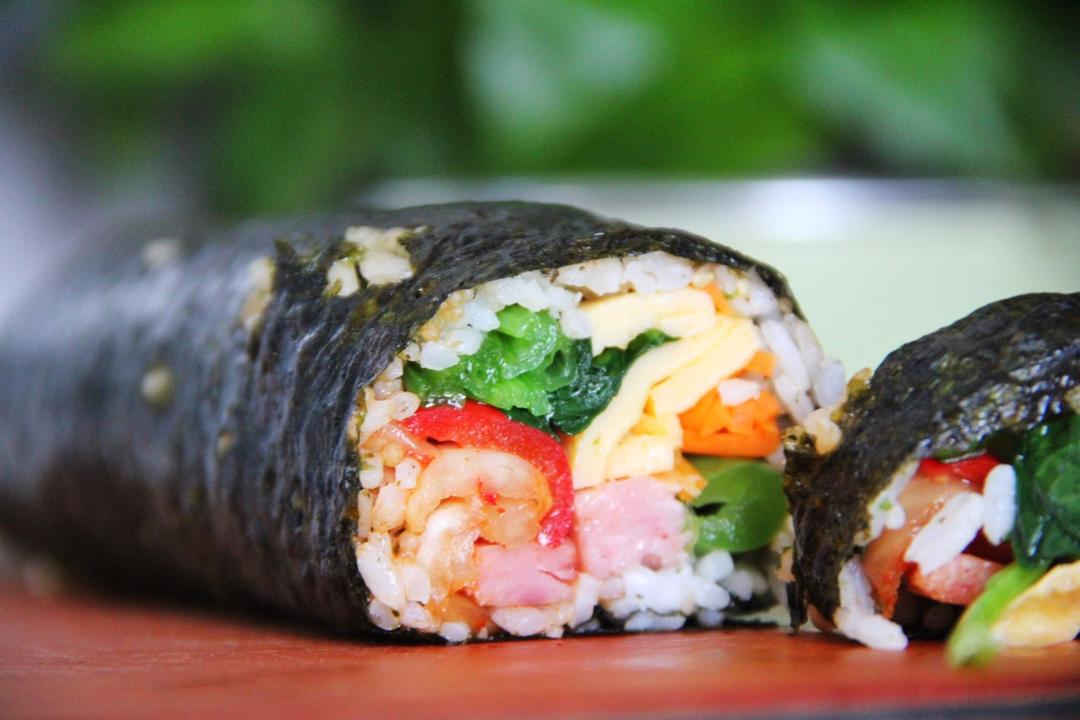 没卷起来的紫菜包饭🍙失败的原因太多了,不过想来最重要的原因一定是俺没舍得买个卷饭竹帘😢😭😩