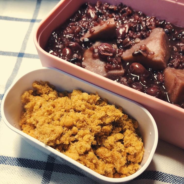 芋头红豆黑米粥,配肉松,惬意~