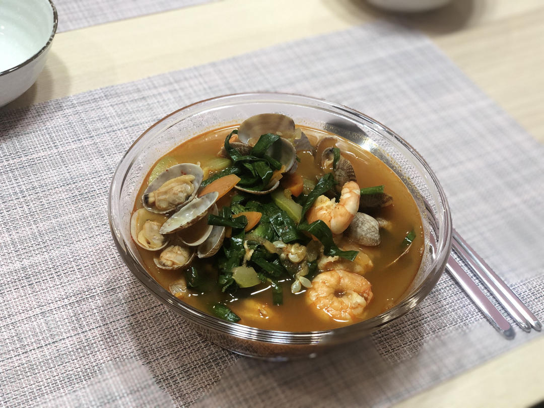 #海鲜汤面#