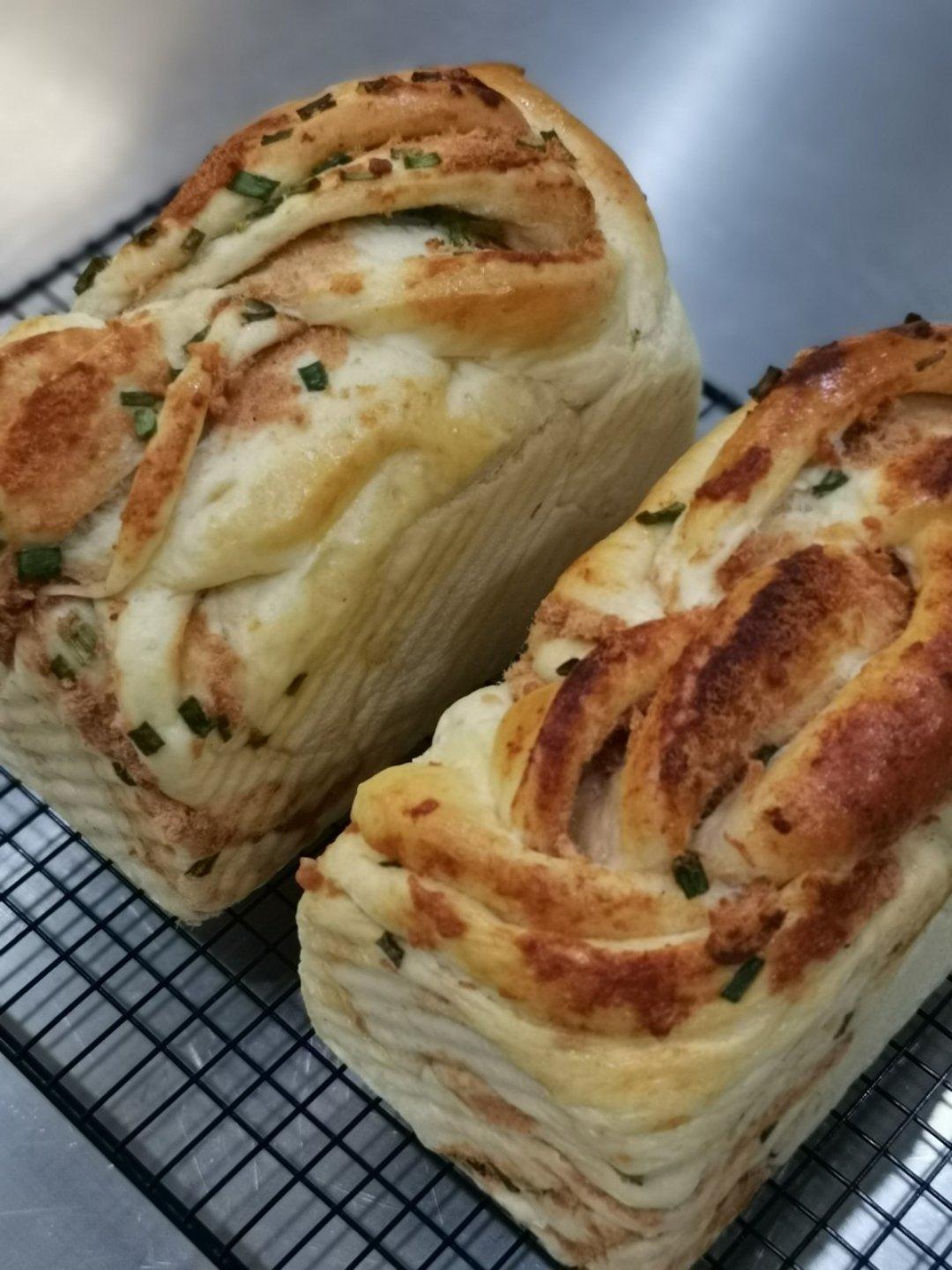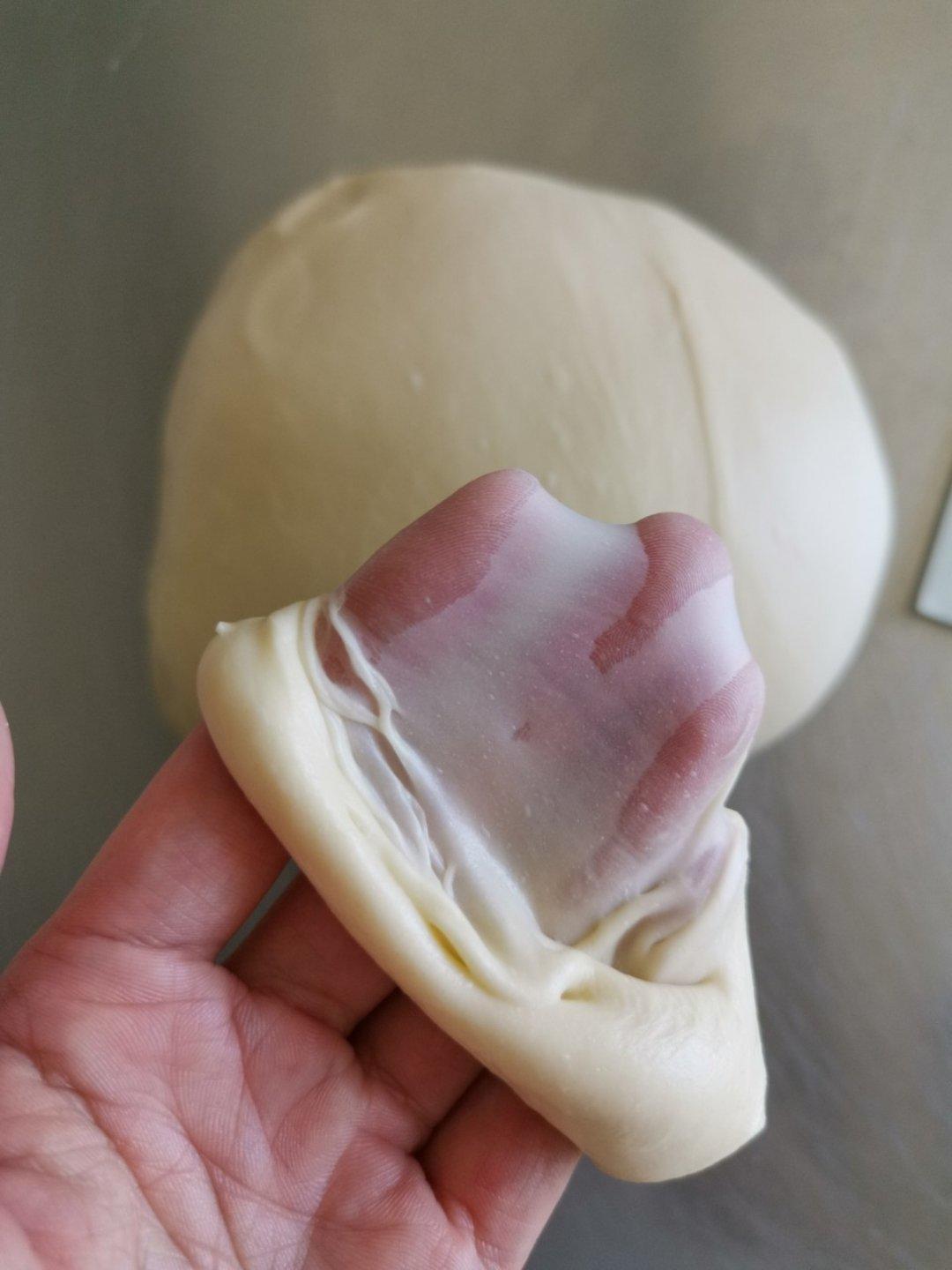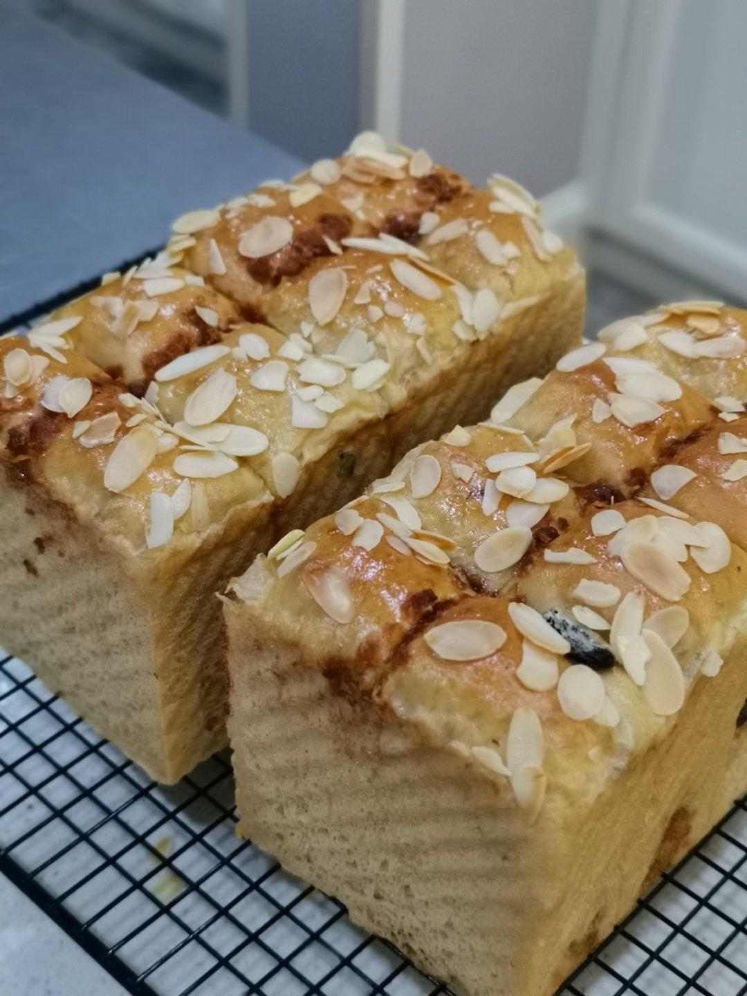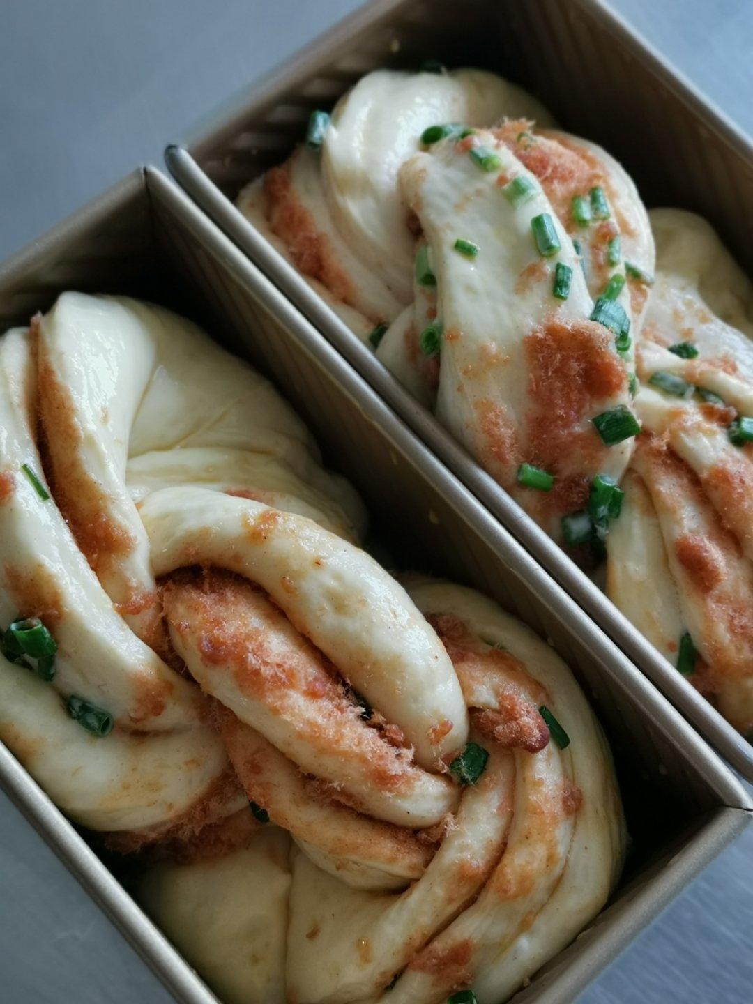 第二次做这个方子,做的时候才想起来,水量偏少,加了不少牛奶。整形有点偏,今天总体来说揉面发酵都不错。