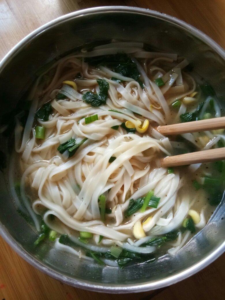 邻居给了一把自己种的新鲜蒜苗,我拔了点香菜,做了妞爱的酸汤面,还有不放醋的黑胡椒生抽面,一样鲜美!香油生抽拌豆腐干豆芽,...