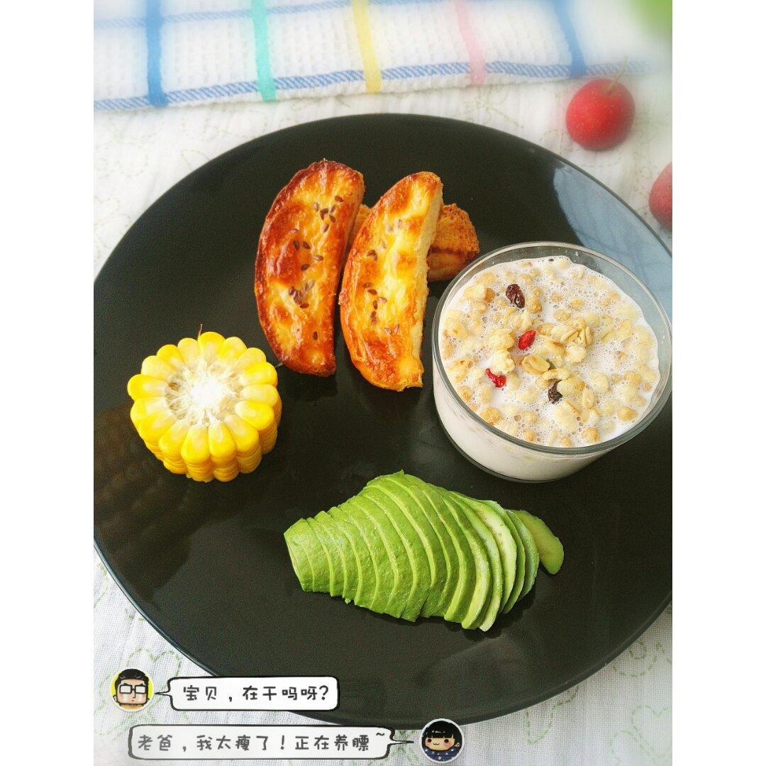 #烤面包、玉米、牛奶麦片、牛油果#