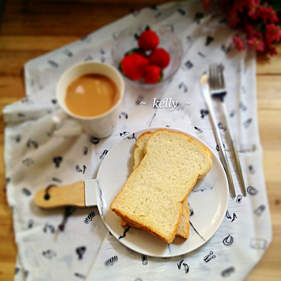 亲们早安,吐司片加奶茶水果