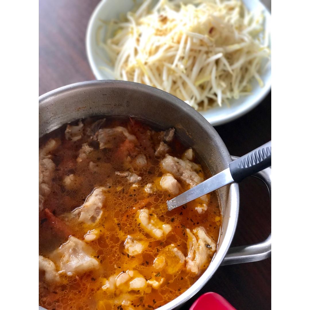 番茄牛筋牛腩,醋溜豆芽,杂谷饭