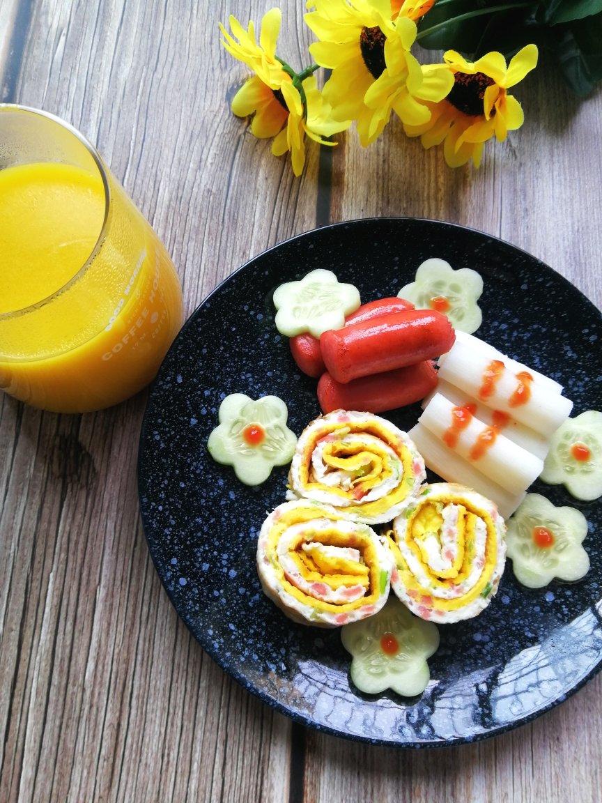 山药 鸡蛋卷 小烤肠外加一杯南瓜小米糊