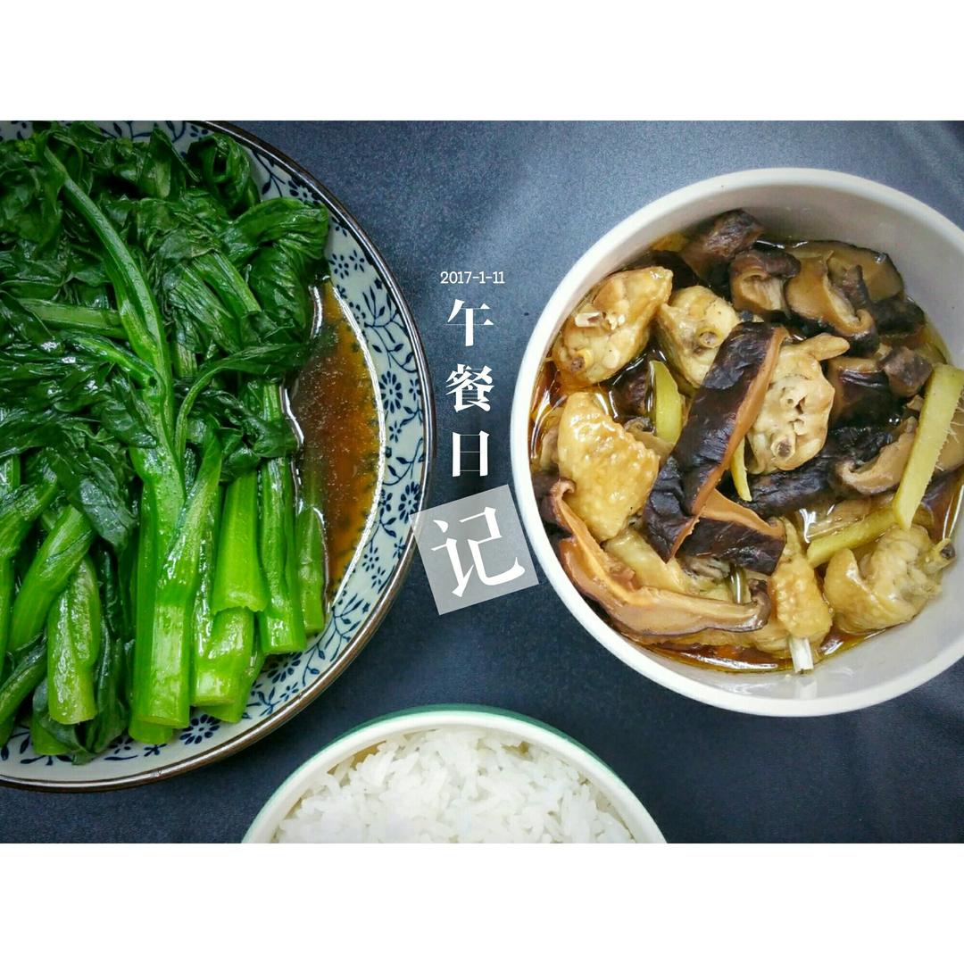 2017-1-11 今天大佬说能不能正常点一肉一菜啊?想了想,行!东菇蒸鸡加宁夏菜心。蒸鸡忘了加生粉,不...
