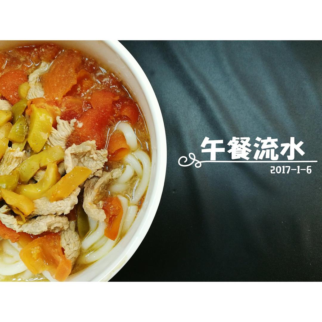 2017-1-6 昨天小伙伴们反映吃得太撑,今天必须清淡……那……快手的番茄榨菜肉丝乌东,好消化又营养。对...