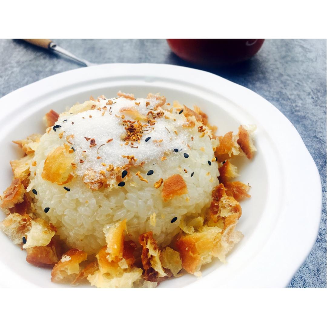 早餐:脆油条白糖糯米饭➕现磨豆浆