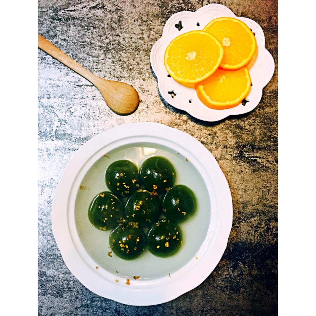 早餐:🍵抹茶麻心汤圆➕橙子🍊