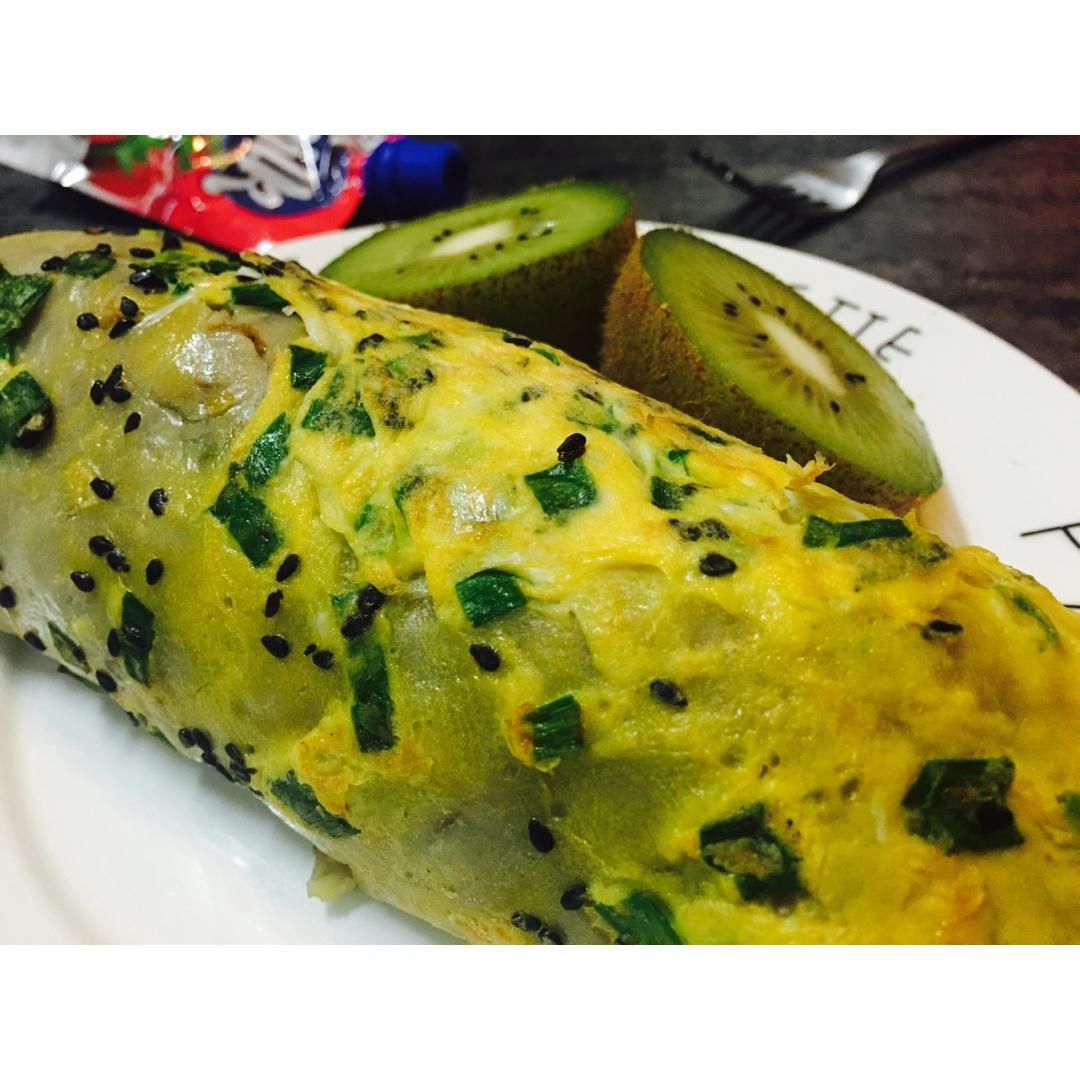 早餐:煎饼果子➕猕猴桃➕🍓草莓吸吸乐