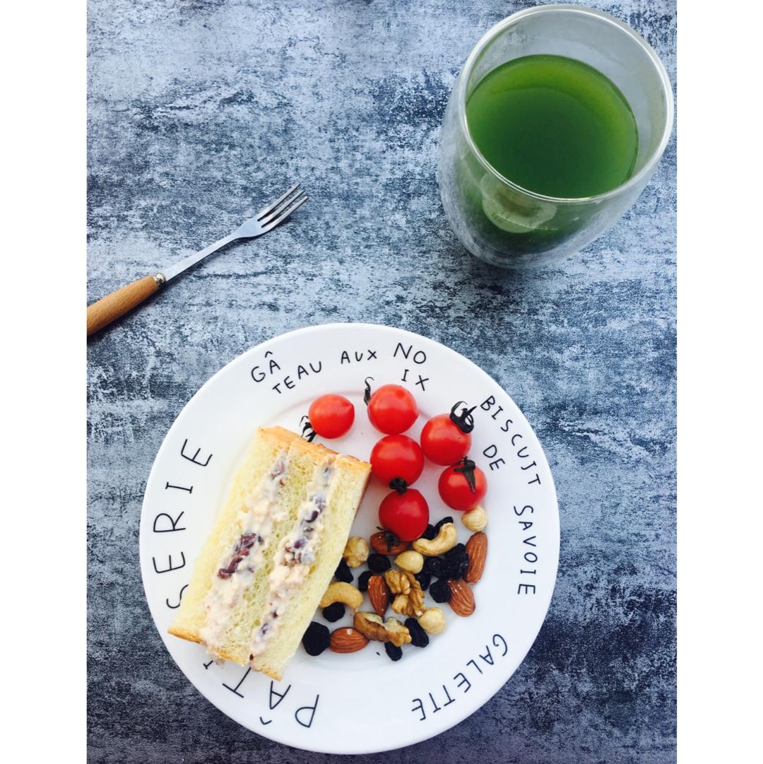 早餐:红豆奶酪包➕圣女果➕坚果➕蜂蜜清汁