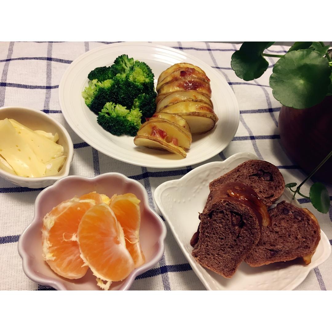 可可排包、芝士烤土豆、奶酪、凉拌西兰花