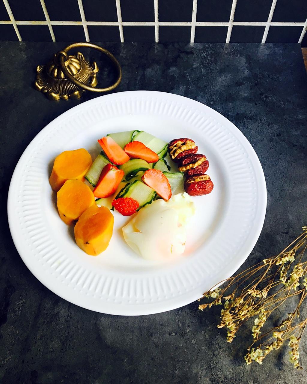 早餐虽然简食但营养要均衡,水煮黄金番薯,水果红枣核桃加个流心蛋,坚持这样吃下去身上的肥肉会不会逃走啊👻😂 #早餐•201...