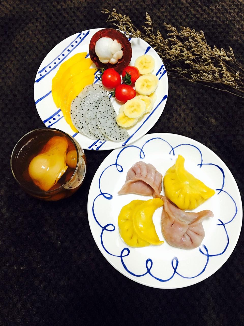 有阳光的早晨很温暖☀️蒸几个前几天包好的南瓜和紫薯饺子,桂圆窝蛋汤,每日一碟水果🍇开启一天周末假期去了😘 #早餐•201...