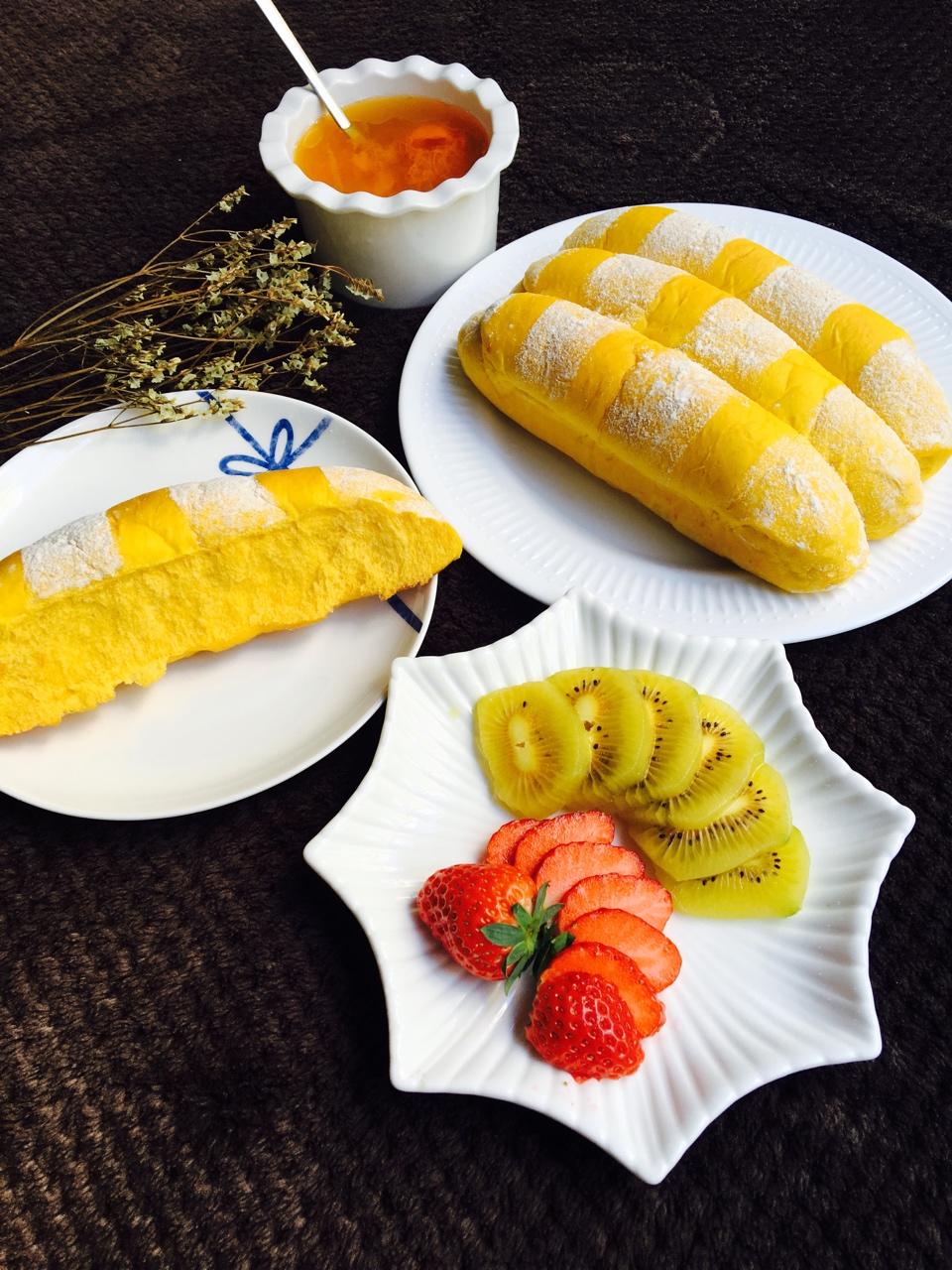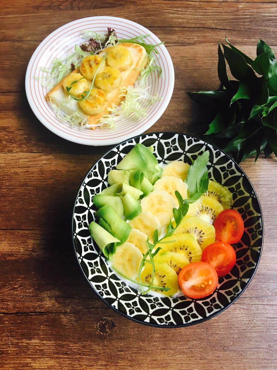 一份水果酸奶🍧一碟香蕉吐司🍌早安早餐🍴
