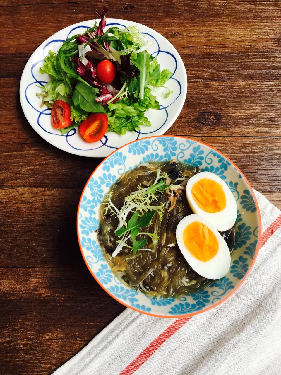 早呀🌿一碗肉沫虾皮番薯粉丝♨️一碟小菜🍃早餐开始享用啦🍴