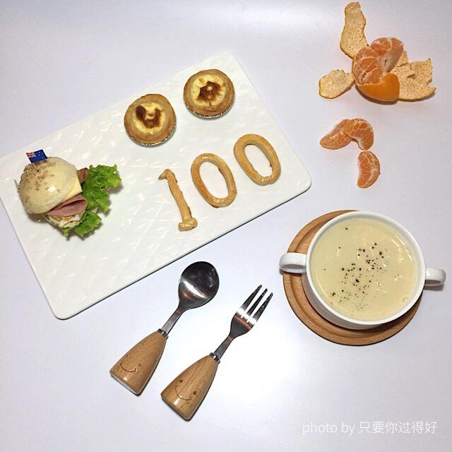 妞子的期末考试,要求做个100分早餐[偷笑],于是拼妈就开动了![呲牙]