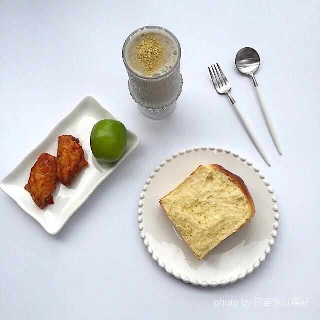 1月21日爱心❤️早餐:小麦胚芽芡实双豆(黑豆和黄豆)豆浆& 中种手撕面包&新奥尔良烤翅&青枣。...
