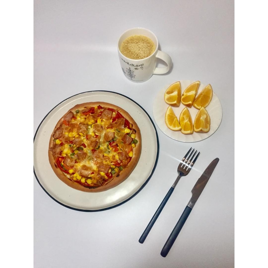 今日爱心❤️早餐:自制培根杂蔬披萨&小麦胚芽南瓜燕...