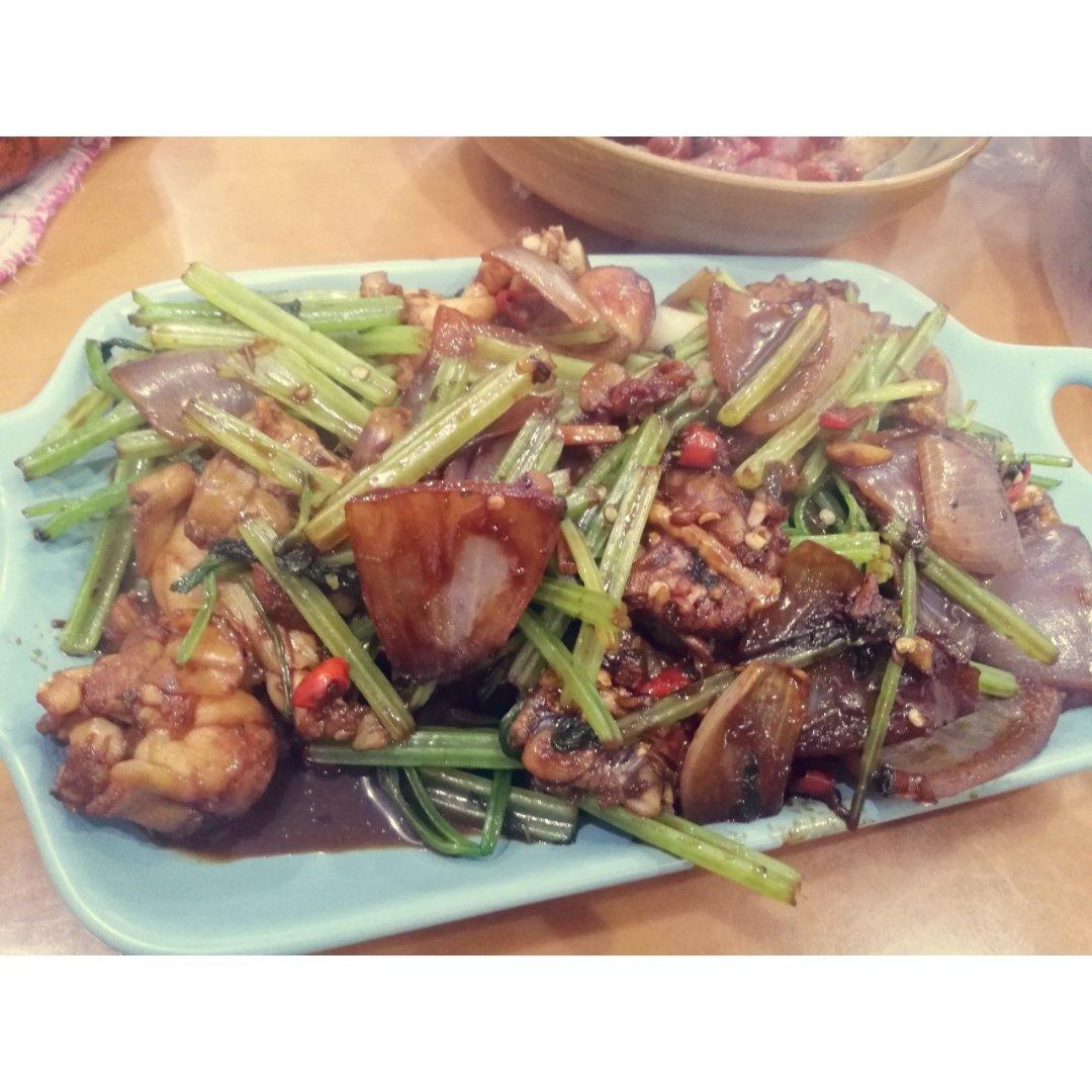 爆炒牛蛙,随便炒的,有啥放啥