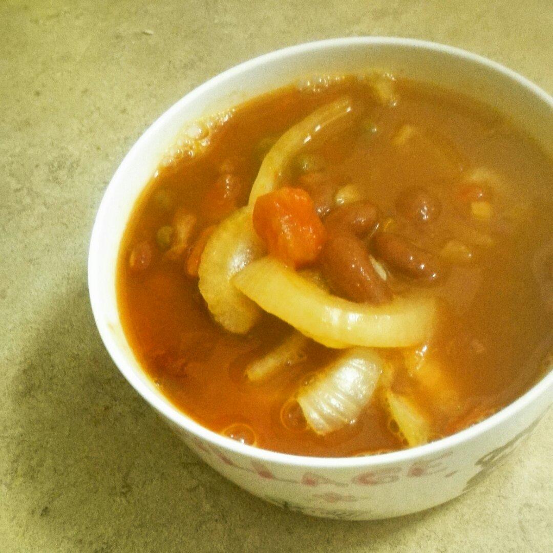 红腰豆洋葱番茄浓汤~大家都忙着秀腊八粥,因为快滚蛋了,也不高兴买新的,一大堆存货等我解决。于...