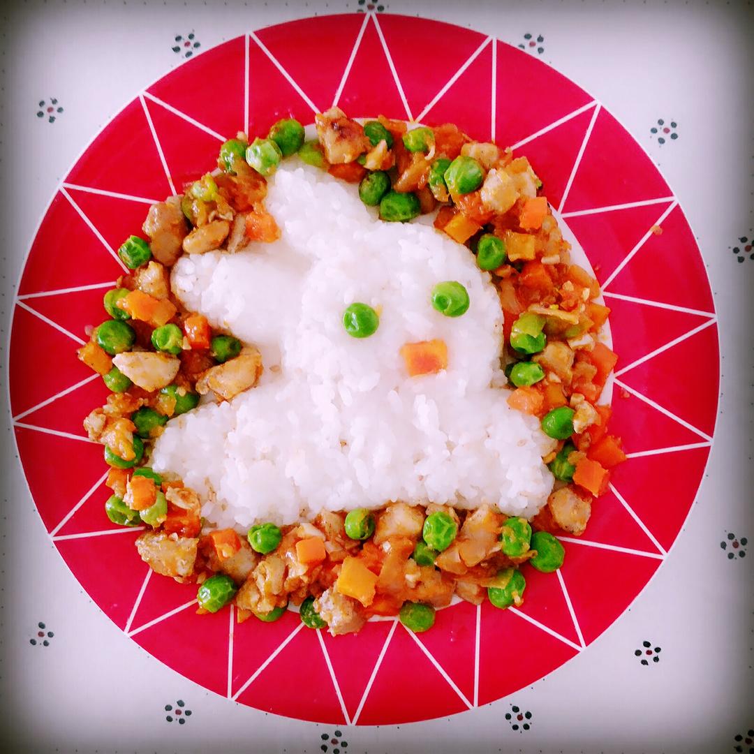 看似简单,但是料很足(⊙o⊙)哦,烤的鸡肉,另外番茄圆葱为酱汁,搭配胡萝卜豌豆,...