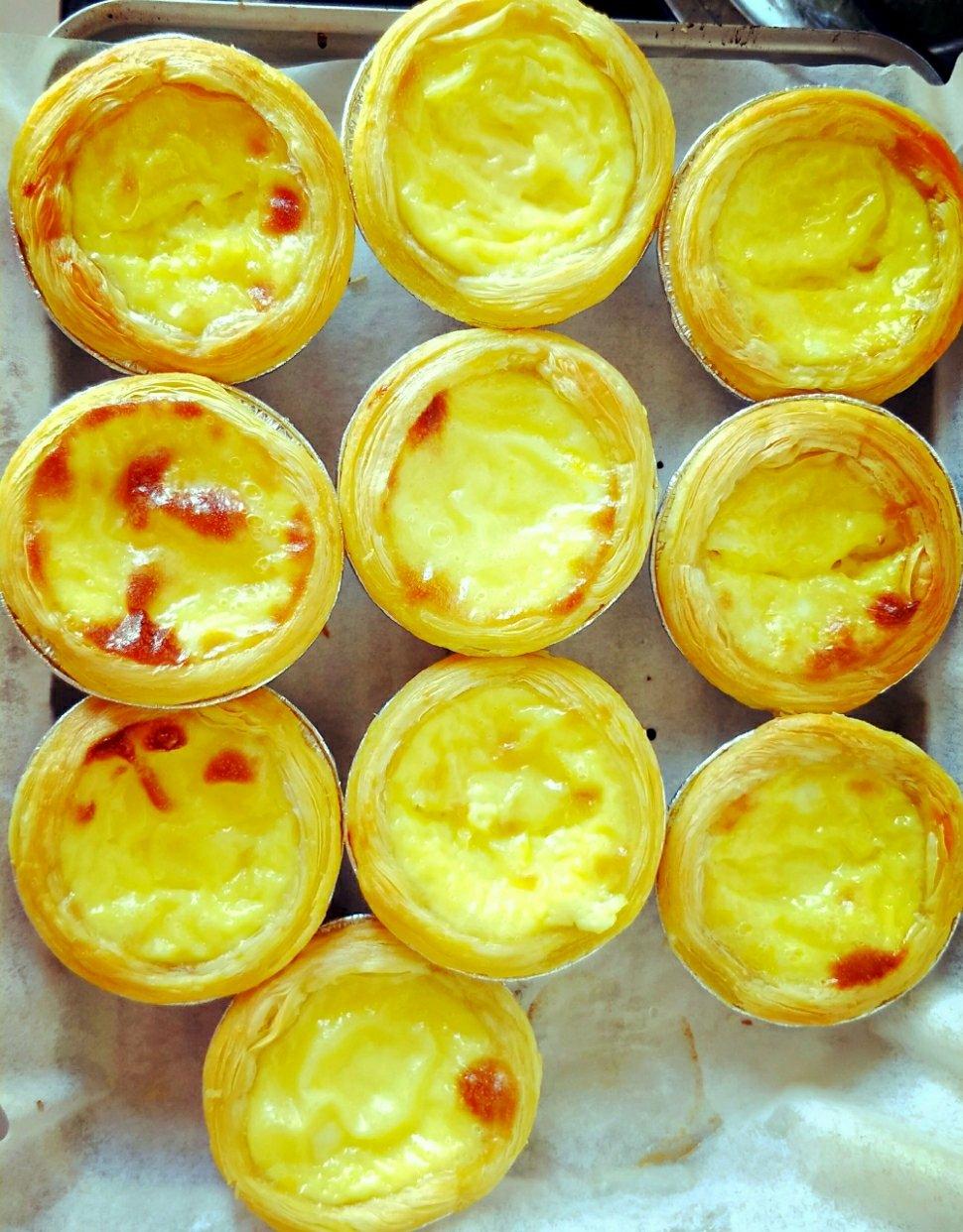 第一次做蛋挞,烤了不到20分钟,按配料不太甜,又加了点糖,成功!