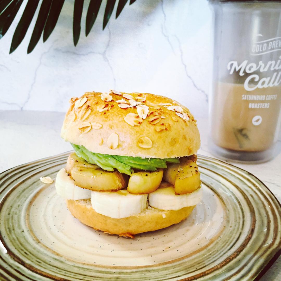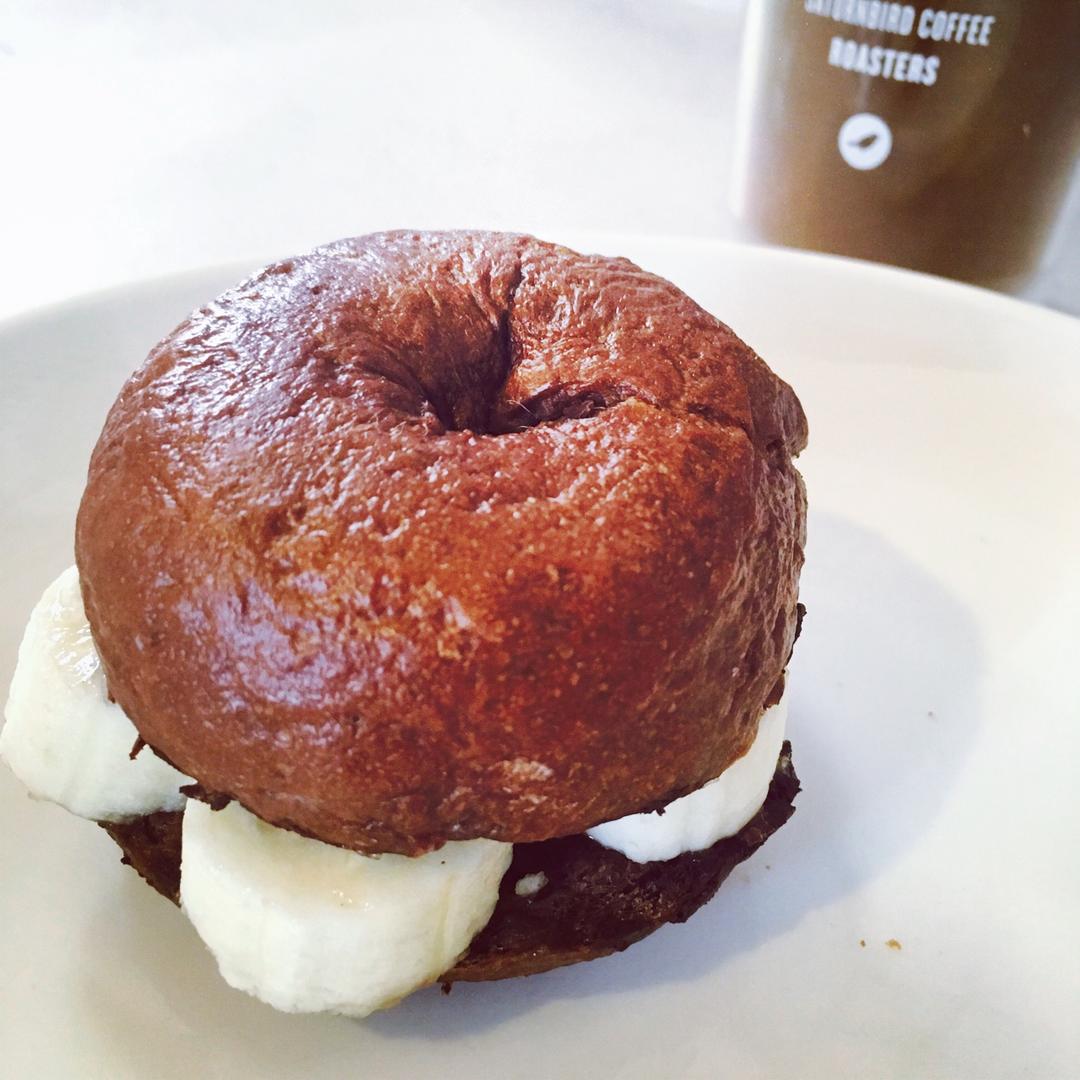 库存的苦甜黑巧贝果 小小一个 之前丢冷冻的 正好垒个三明治~~