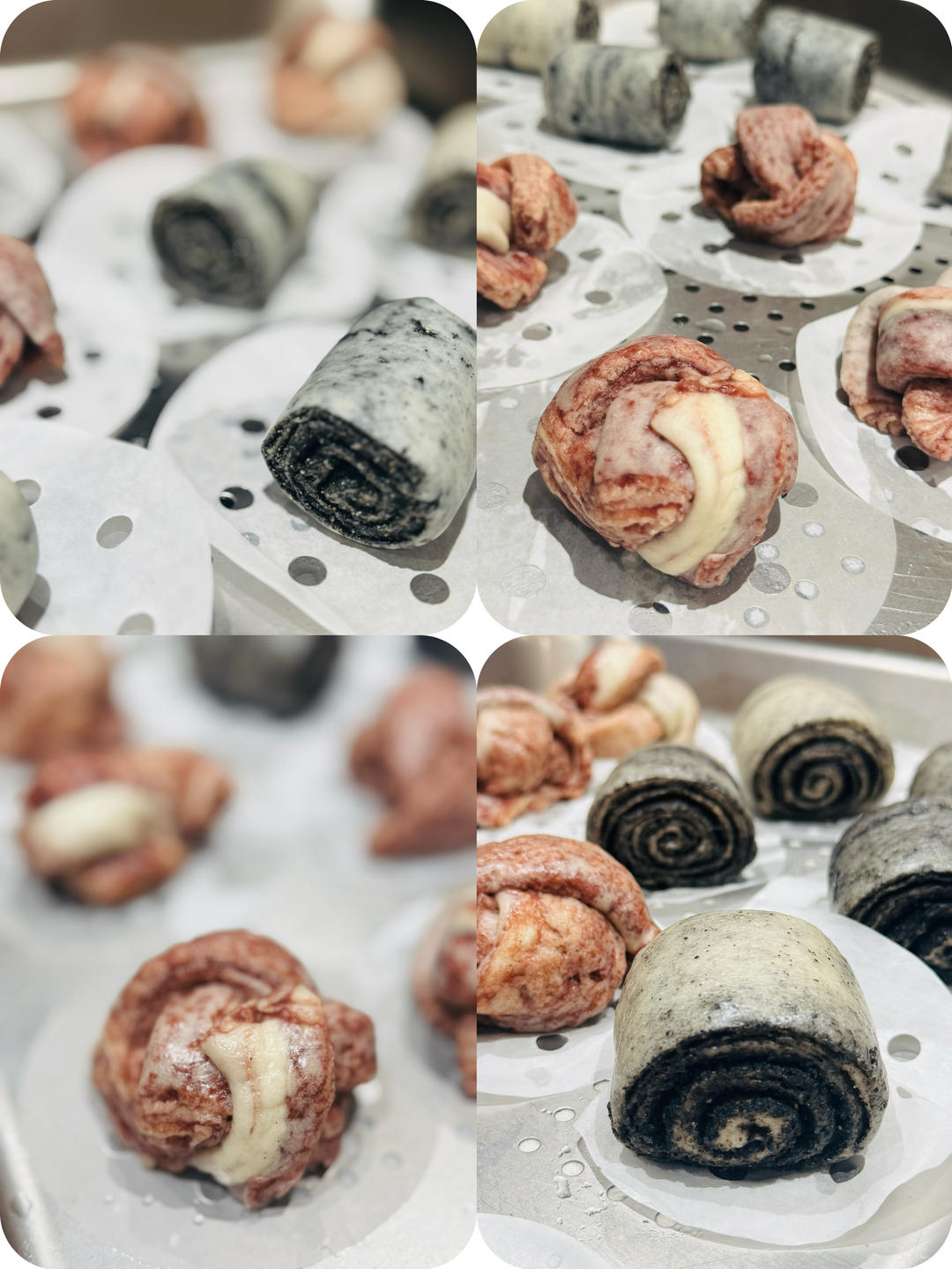 随意造型的豆沙&黑芝麻馒头