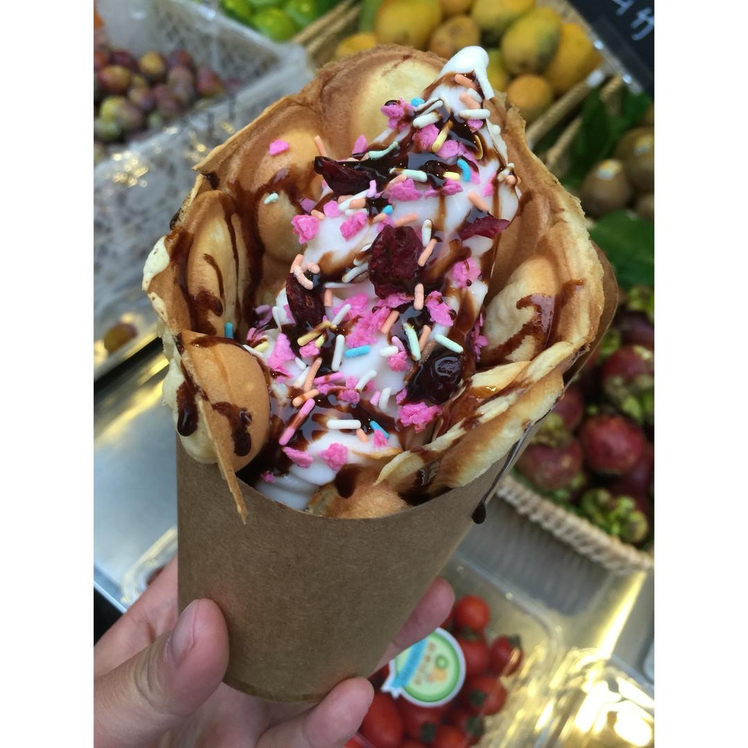 朋友家的店~买了个鸡蛋仔冰淇淋~