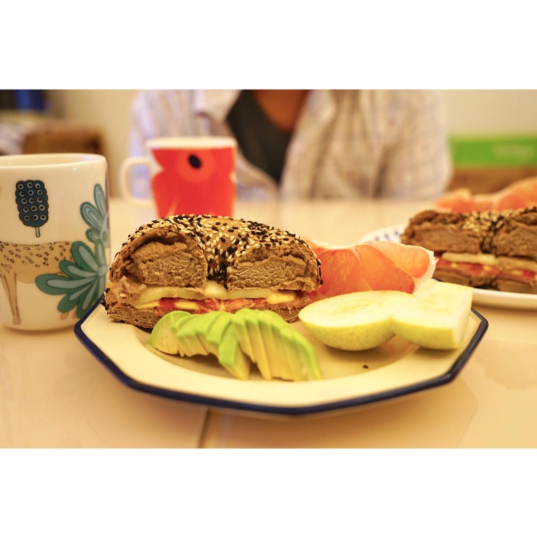 拿星爸的现成品充数 双层芝士火腿贝果三明治
