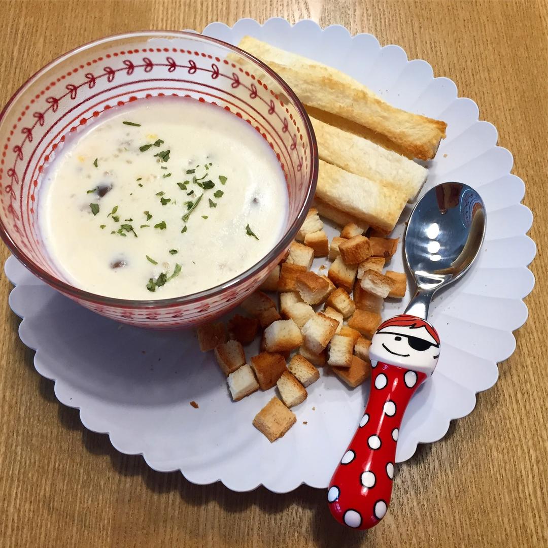 一人一份,蘑菇玉米忌廉汤+烤面包条