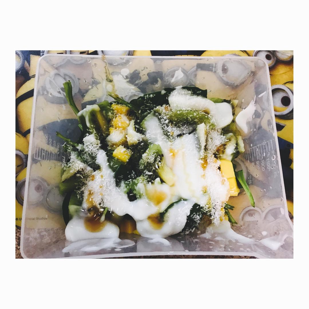 菠菜,芒果,猕猴桃,酸奶,蜂蜜,椰蓉。