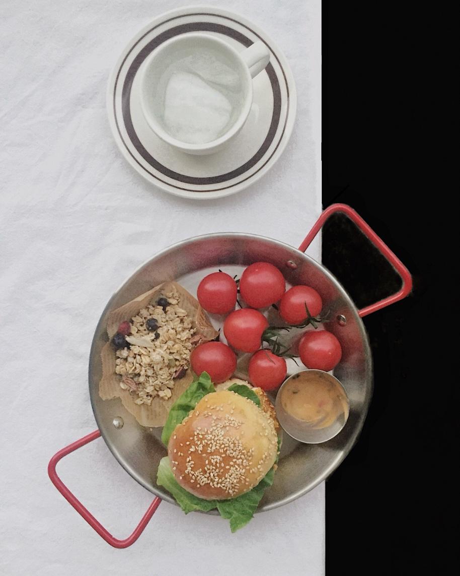 早餐:鸡排薯饼汉堡、麦片。