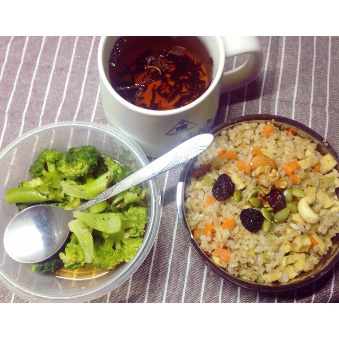 Day8早上又没起来……直接当早午餐吃了……糙米藜麦炒饭,拌西兰花,红茶,姨妈来访吃点热的😊晚上翘课去看了天才捕手,很好...