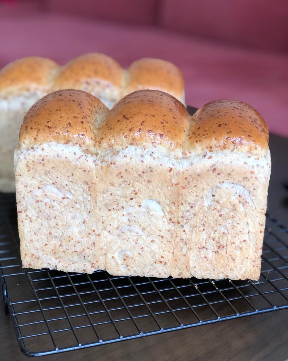 加了点麦麸进去假装全麦吐司😂一发好像有点过了,天热了要缩短时间了,高度和组织都不够理想,继续努力!