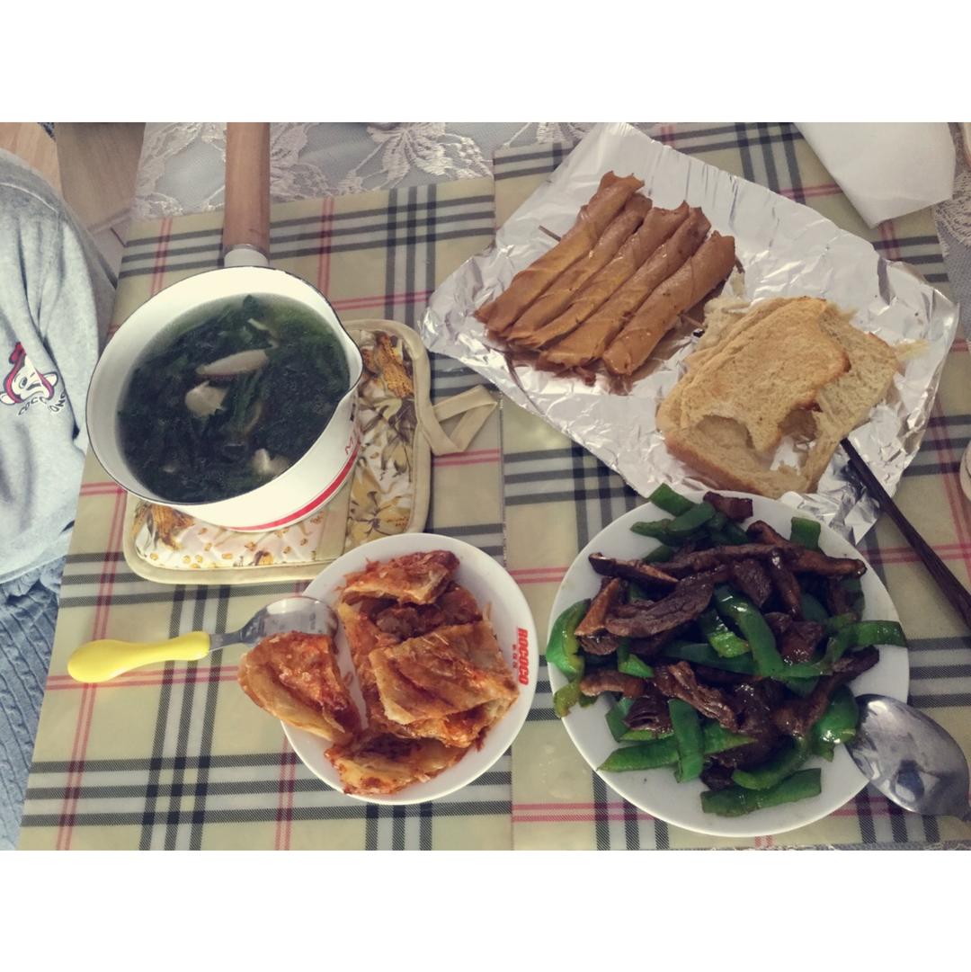 少爷:菠菜香菇牛肉豆腐汤、酱香饼