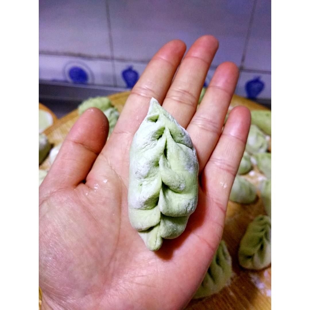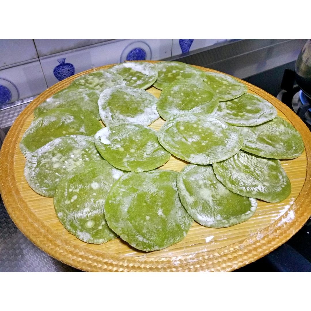 菠菜汁和的面团,韭菜鸡蛋馅