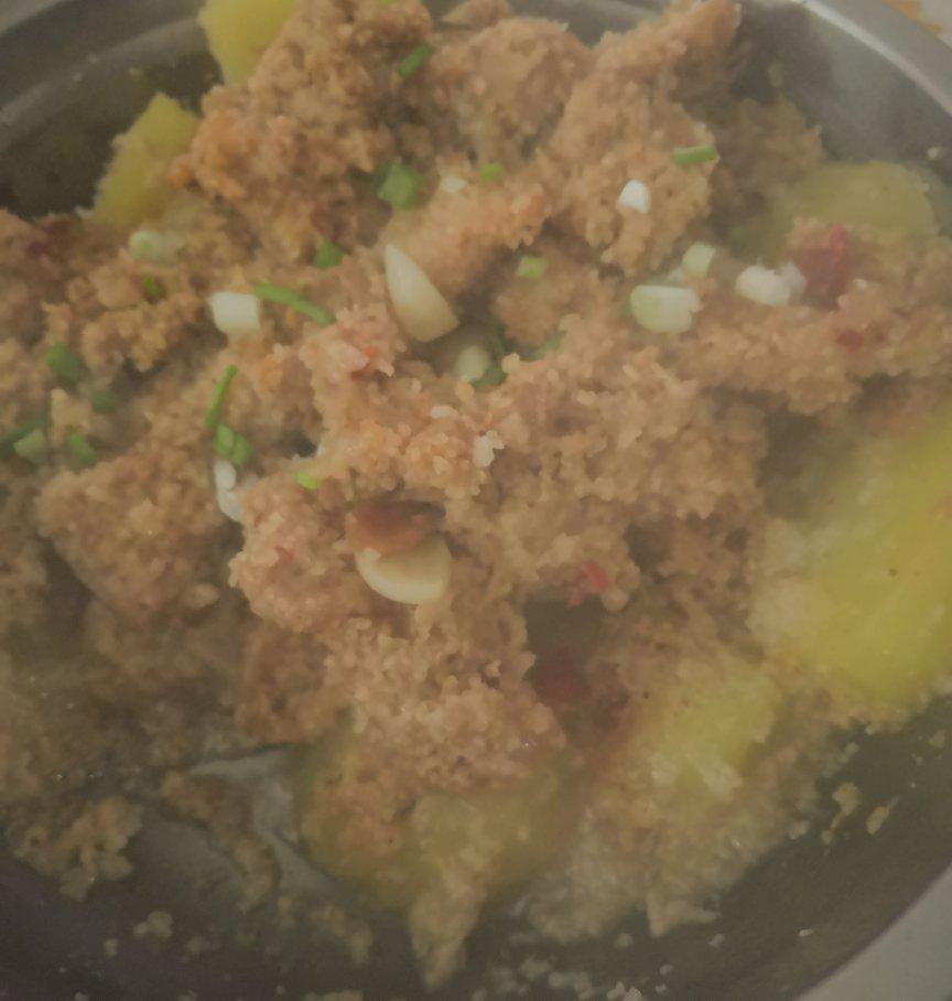 今天中午的粉蒸肉,感觉颜色太浅了!味道还行!
