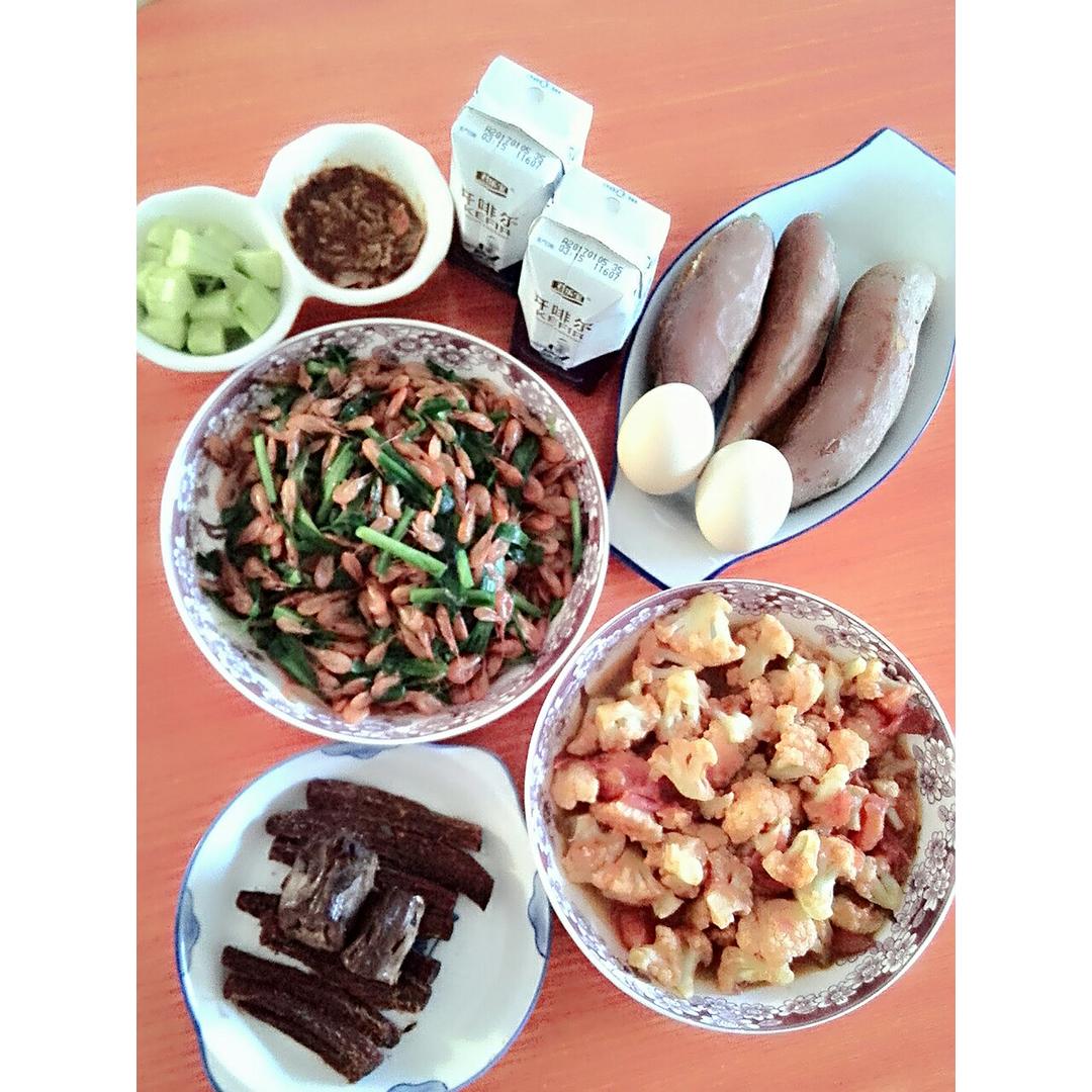 河虾炒韭菜,西红柿炒菜花