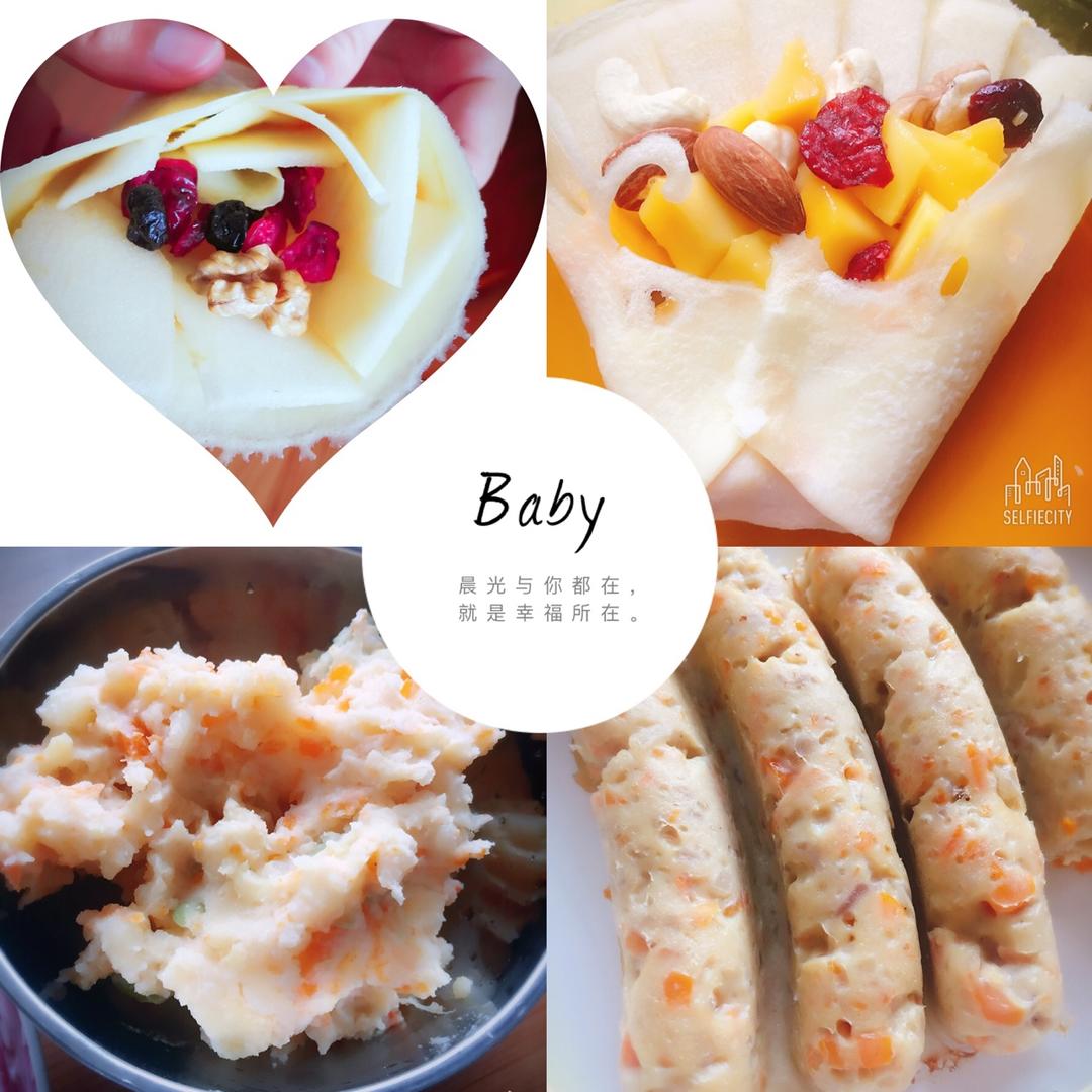 ♪自制可丽饼(里面抹了花生酱,然后铺上苹果片、芒果、坚果果干)