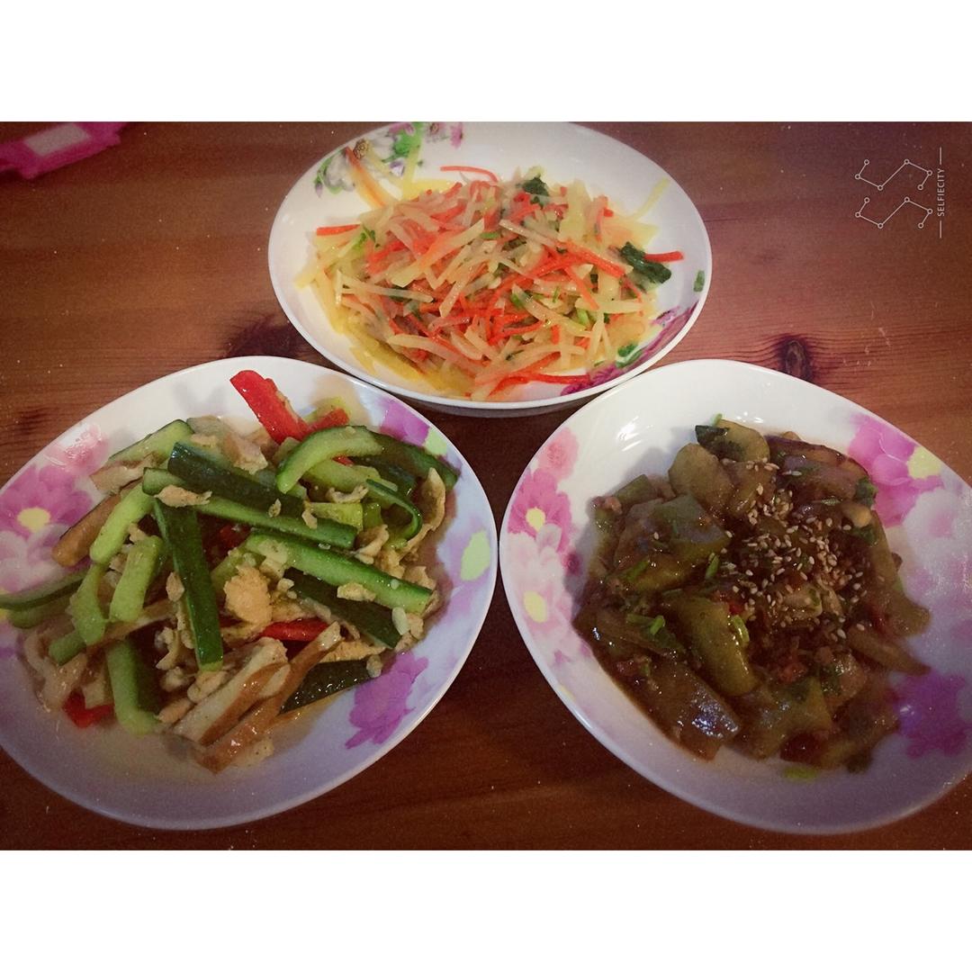 晚饭:凉拌小瓜+酸爽小碗耳+日式土豆炖肉+煮熟面条忘拍了…… #晚餐...